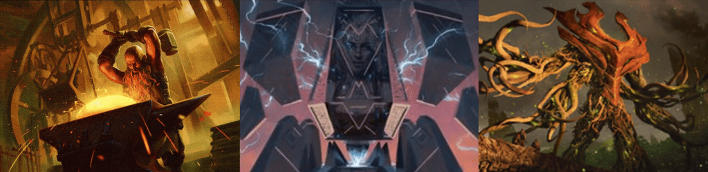 Lifecrafter’s Bestiary is a cheap tool to keep midrange green decks fueled up in the mid to late game. Metalwork Colossus in certain builds will be a cheap to free 10/10 that can keep coming back. Sculpting Steel can be another copy of the best nonlegendary artifact in play which can be very powerful.