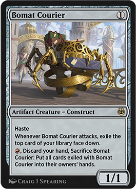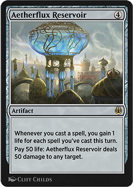 Cultivator’s Caravan is a decent mana rock that can upgrade an attacker or blocker if relevant. Bomat Courier is a powerful include into mono red aggro providing card advantage after early swings. Aetherflux Reservoir is stellar storm card with the potential to go off out of nowhere and the life gain gives you time against aggressive strategies.