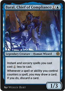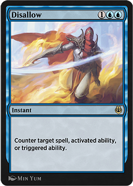 Whir of Invention is great for tutoring powerful artifact engines or combo pieces. Baral, Chief of Compliance is a mono blue control player’s dream, allowing them to get a cost reduction on their spells and value when spells are countered. Disallow is a superb counterspell with full flexibility to counter a planeswalker ult or powerful triggered ability.