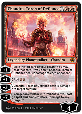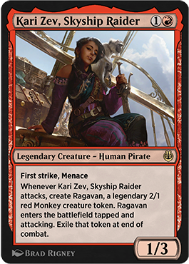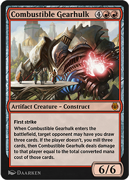 Kari Zev, Skyship Raider is a great early threat for mono red that could take the place of medium creature currently in that spot. Combustible Gearhulk is for midrange or reanimator builds that becomes card advantage or burn. Chandra, Torch of Defiance is one of the best Singleton cards of all time with a ton of flexibility as card advantage, removal, or a late-game wincon.