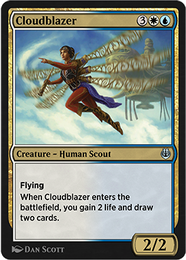 Saheeli Rai, although unable to combo without her feline friend, is still a nice value planeswalker that pairs well with creatures with ETBs especially the Temur gearhulks. Hidden Stockpile has the potential to become a powerful engine for an Orzhov aristocrats deck and this is a tool those deck were looking for. Cloudblazer serves as a great addition to flicker decks playing two roles as life gain and card draw.