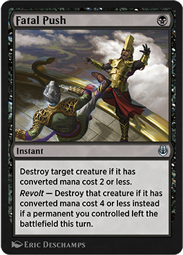 Noxious Gearhulk is an effective flicker or reanimate target, gaining you life while taking out an opponent’s creature. Glint-Sleeve Siphoner is a great tempo threat that even gains enough value on its own that it doesn’t need to go with other cards with energy. Fatal Push is a multiformat all-star that will be hard to omit from any black list.
