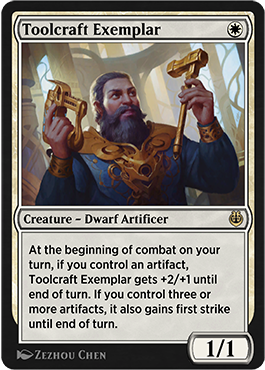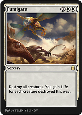 Toolcraft Exemplar starred as headliner of the aggressive artifact strategies when it was in Standard and I imagine it could rise to prominence again with Kaladesh being an artifact-based set. Fumigate adds another board wipe to mono white that could end up finding a spot in control decks. Angel of Invention works well with token strategies as it can help you go wide with servos or tall with the angel.