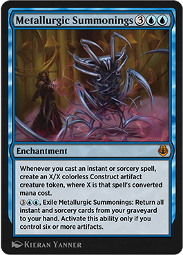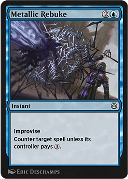 Torrential Gearhulk is a stellar control wincon with upside of being an extra copy of a counterspell if timed properly. Metallurgic Summonings is also a great control wincon making tokens like Shark Typhoon but comes down a turn earlier and has the ability to get spells back to your hand if absolutely necessary. Metallic Rebuke is a tempo counter especially good with artifact synergies.