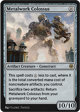 Lifecrafter’s Bestiary is a cheap tool to keep midrange green decks fueled up in the mid to late game. Metalwork Colossus in certain builds will be a cheap to free 10/10 that can keep coming back. Sculpting Steel can be another copy of the best nonlegendary artifact in play which can be very powerful.